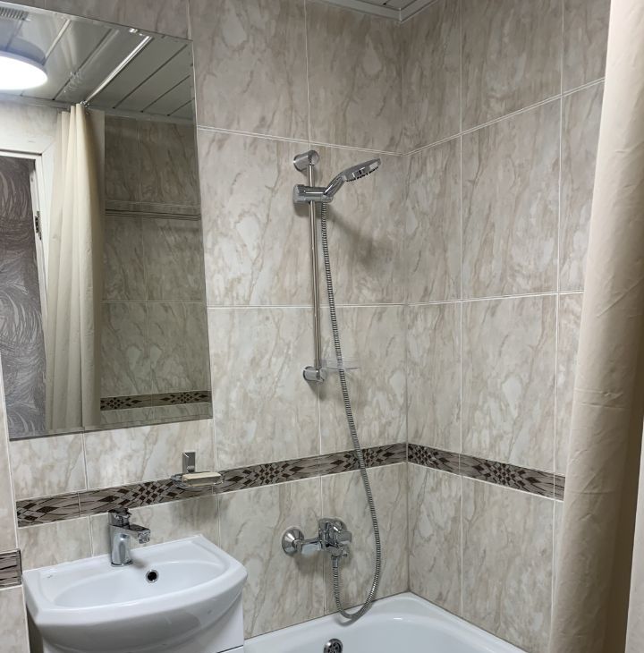 В квартире сделан качественный евроремонт. В комнате и на кухне есть вся необходимая мебель для комфортного проживания. Из техники предоставлены кондиционер, холодильник, телевизор и стиральная машина. Совмещенный санузел оборудован ванной, что делает квартиру ещё более удобной для проживания. Есть подключение к интернету, поэтому вы всегда будете на связи.