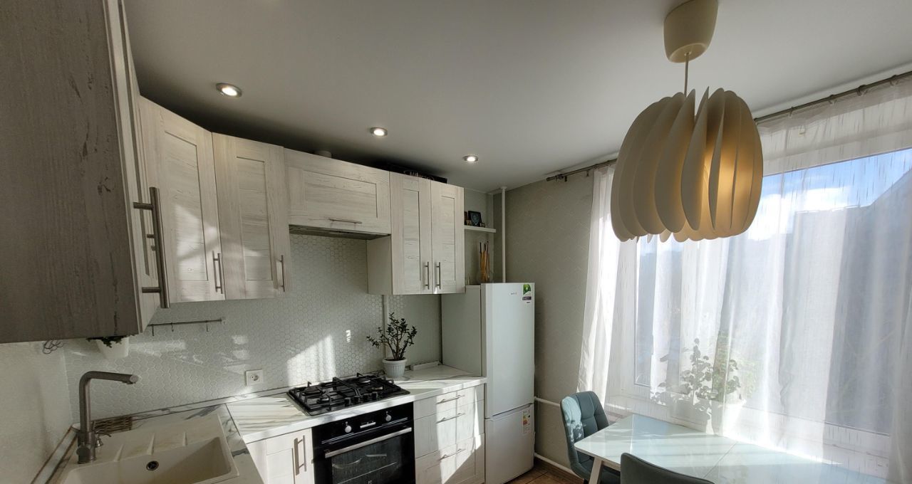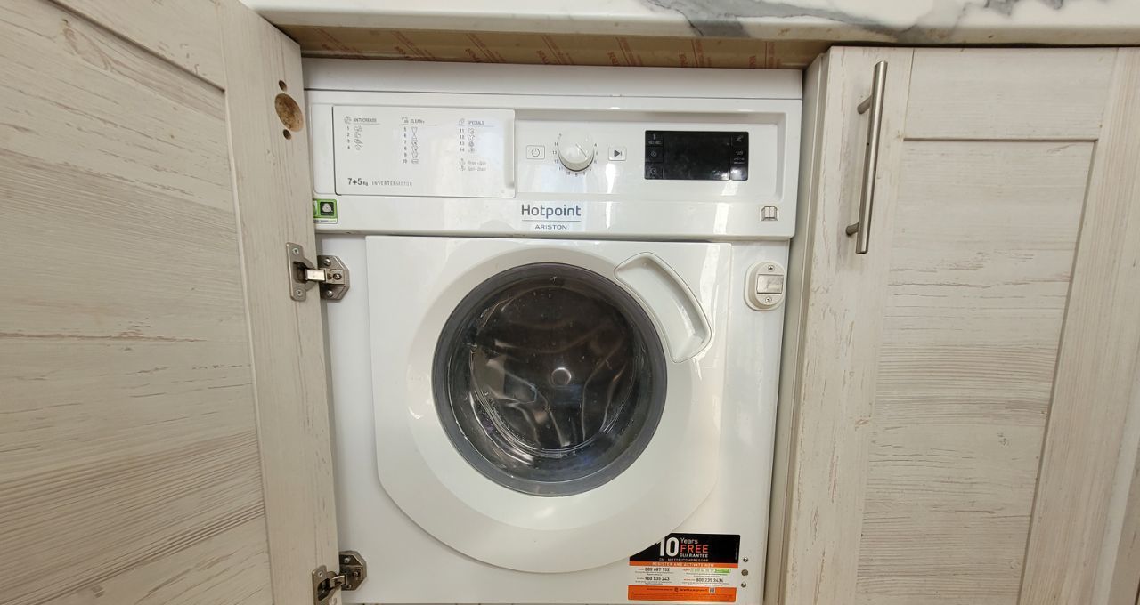 На кухне установлена встроенная стиральная машина Hotpoint Ariston и подведён тёплый пол. Квартира тёплая, светлая, окна выходят в тихий двор, полностью готова к проживанию.