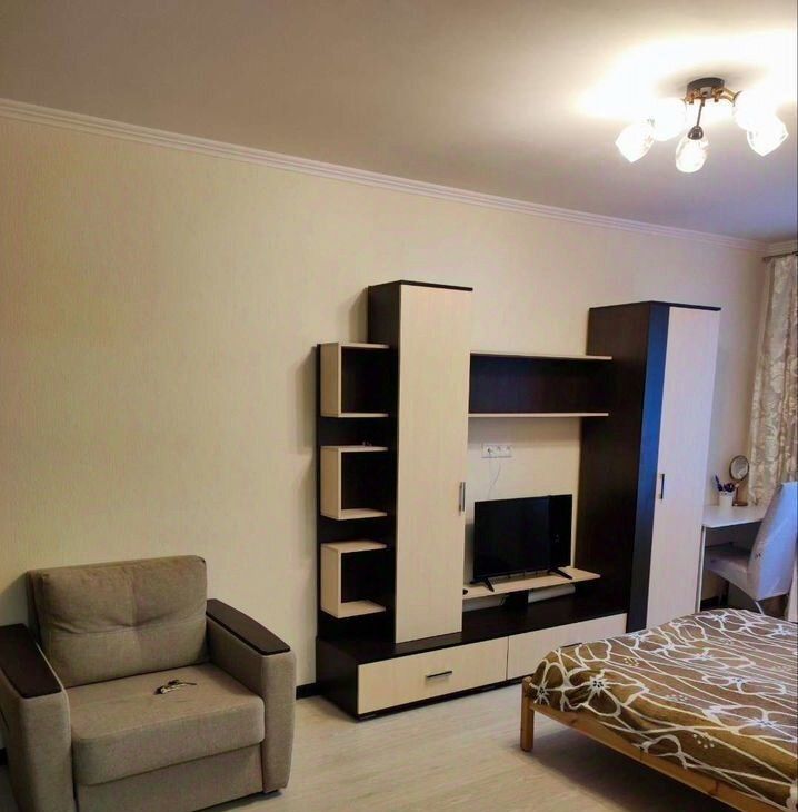 Отличная квартира по отличной цене. Великолепный вид из окна. Холодильник, телевизор, встроенная кухня, Интернет, Wi-Fi. Рядом есть все магазины, аптеки, школа, детский сад. Метро в пешей доступности.