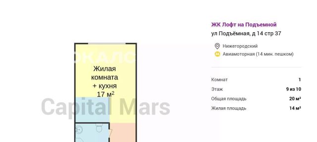 1-к кв. Москва Подъемная ул., 14С37 (20.0 м²)