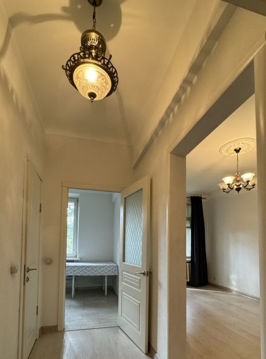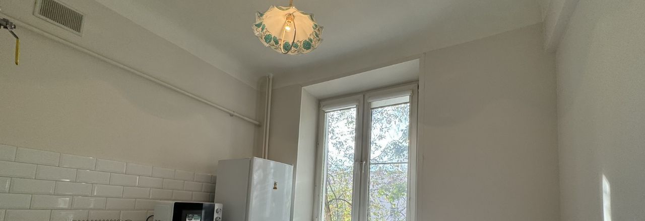 Сдается просторная однокомнатная квартира у парка в редком трех-этажном доме, построенном в начале 20го века. Высокие потолки, толстые стены, кирпич. Большая комната с балконом, изолированные санузлы.