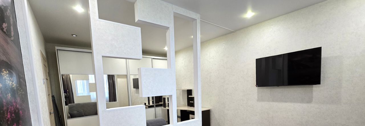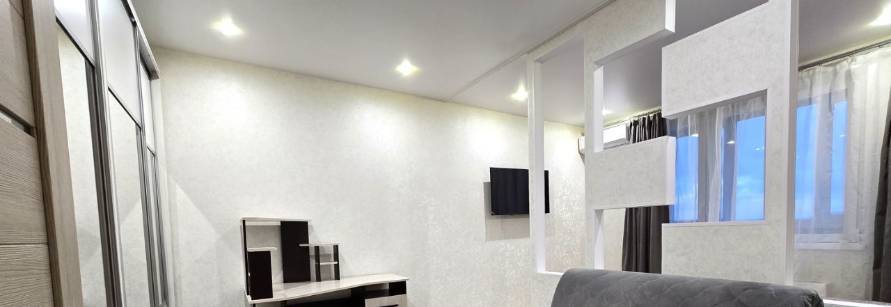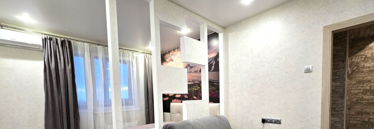 •комнату с выходом на просторный балкон, благоустроенную на спальную и рабочую зоны, меблированную большим шкафом-купе с системой хранения одежды, двуспальной кроватью с подъемным механизмом и новым ортопедическим матрасом, раскладывающимся диваном, а также письменным столом и удобным компьютерным креслом, оснащенную кондиционером и телевизором;
