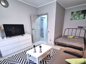 В спальной зоне размещен качественный диван - кровать с ортопедическим основанием.Вас порадует большой и очень вместительный шкаф, где без труда поместятся все ваши вещи, от зимы до лета.