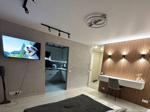 Предлагается 1-комнатная квартира общей площадью 42 м² в ЖК "Полярная 25". Для комфортного проживания в наличии имеется вся необходимая мебель. Кухонный гарнитур оснащен посудомоечной машиной, духовой печью. Окна обращены на улицу.