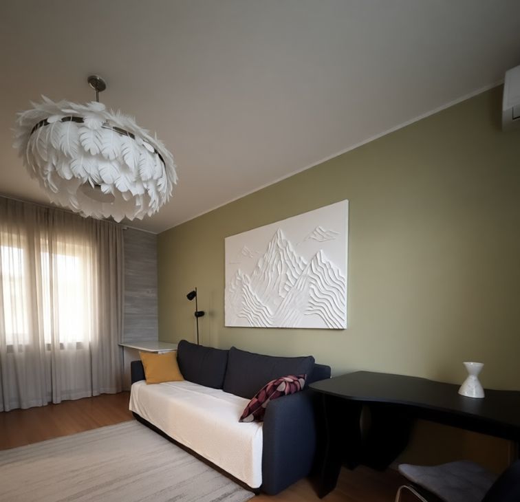 Современная красивая квартира. Сдается от месяца. Новый диван в комнате с ортапедическим матрасом. Вся бытовая техника. Всего два дивана, рабочий стол, 2 шкафа для хранения вещей, большой шкаф купе. Разные уровни освещения. Развитая инфраструктура района, рядом магазины, фитнес центры, парки.Оперативный показ.
