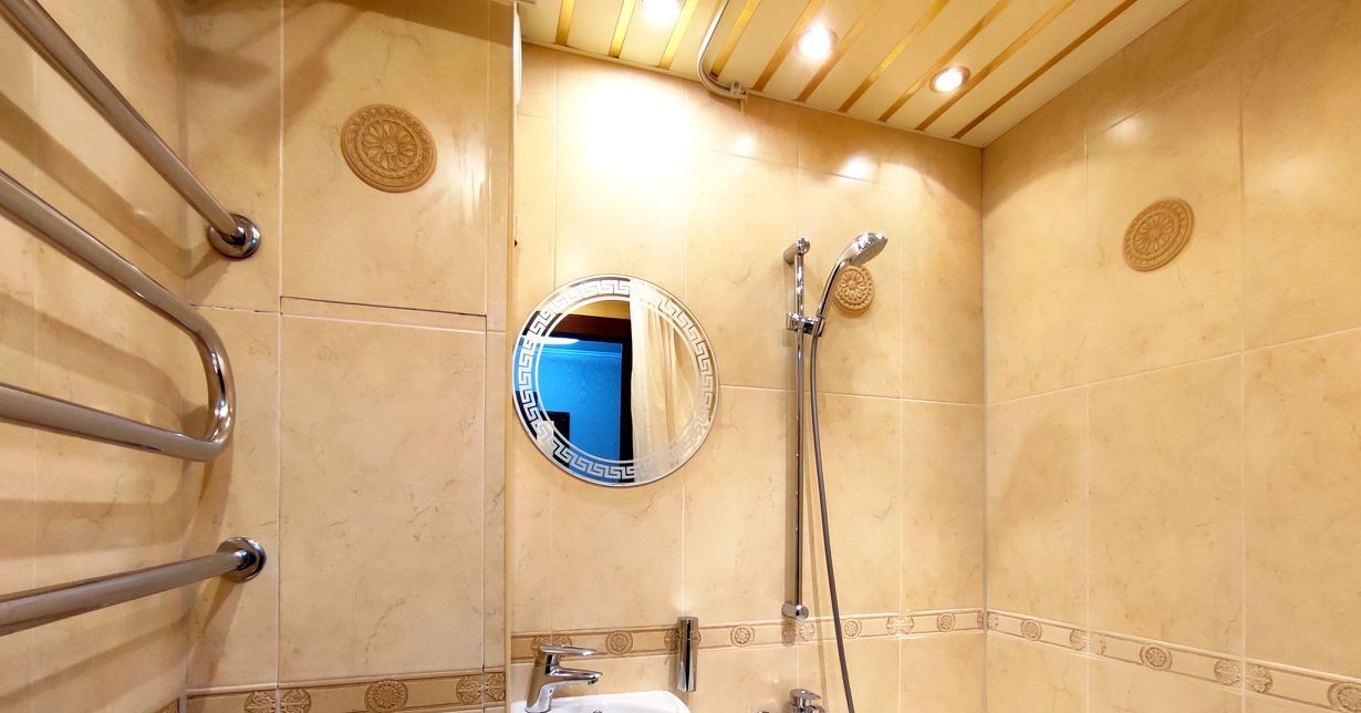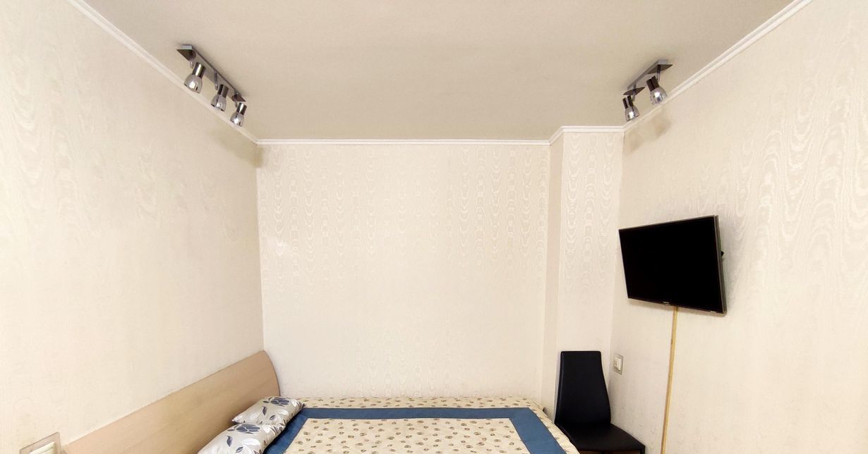 Большая кухня, ванная, комната с зоной для сна. Находится в спальном районе в непосредственной близости от Медведковского лесопарка.