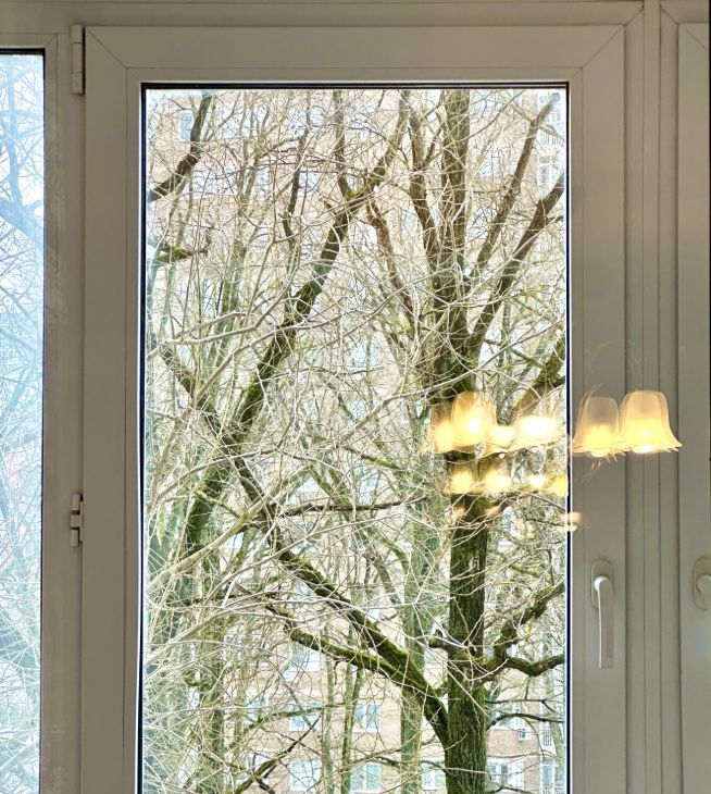 Главное преимущество квартиры — ощущение света, тишины и воздуха. Окна выходят на дубовый парк: по утрам — красивый рассвет, в течение дня — много естественного света, при этом в квартире тихо, свежо и не слышно дороги. Установлены шторы blackout.