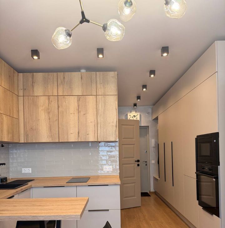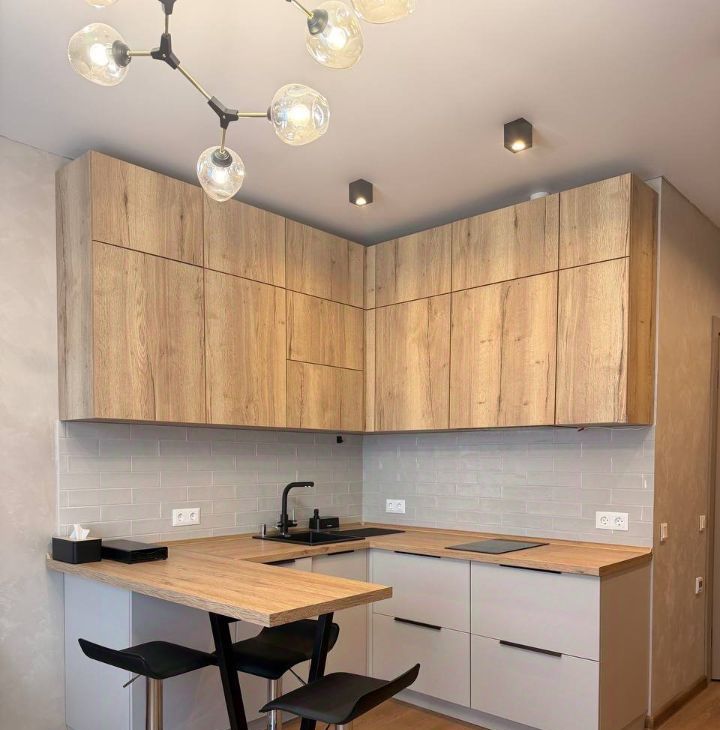 кухонный гарнитур с барным столом и стульями,