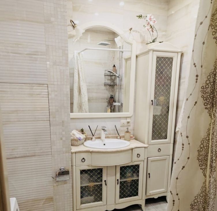 В квартире сделан дизайнерский ремонт, который сочетает в себе стиль и функциональность. Уютная комната обставлена мебелью, а просторная кухня площадью 18 кв. м оборудована всем необходимым: есть кондиционер, холодильник, посудомоечная машина и телевизор. Ванная комната оснащена душевой кабиной и стиральной машиной. Подключён интернет. Уникальная планировка- распашонка. спальня выходит в тихий двор.