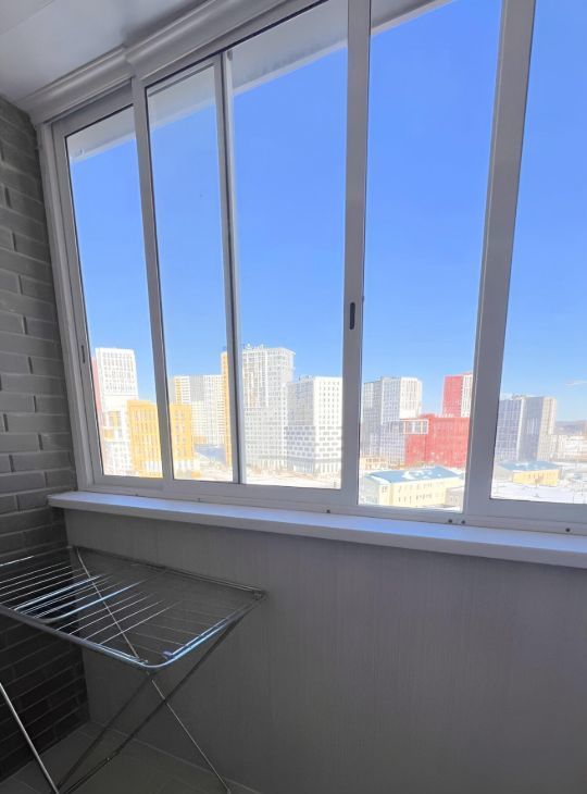 Хорошая планировка: просторная комната и кухня, есть вместительная гардеробная, совмещенный санузел, застекленная лоджия.