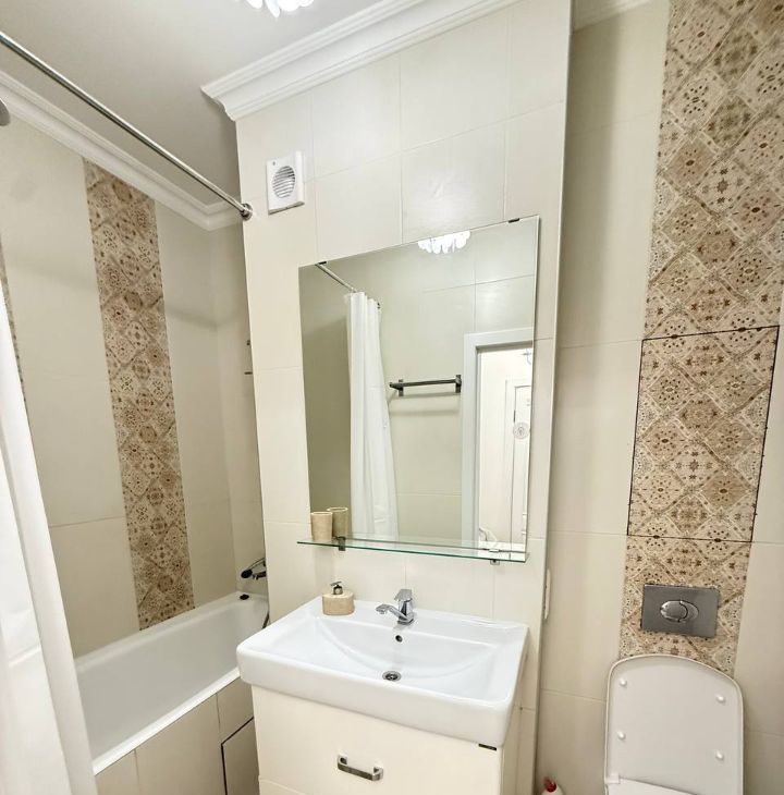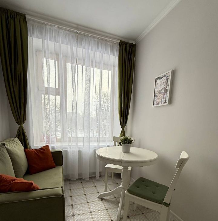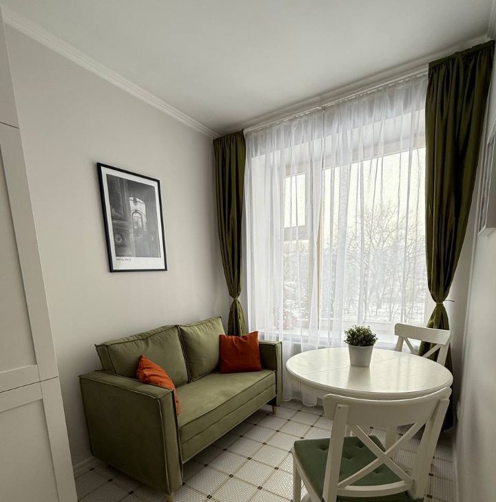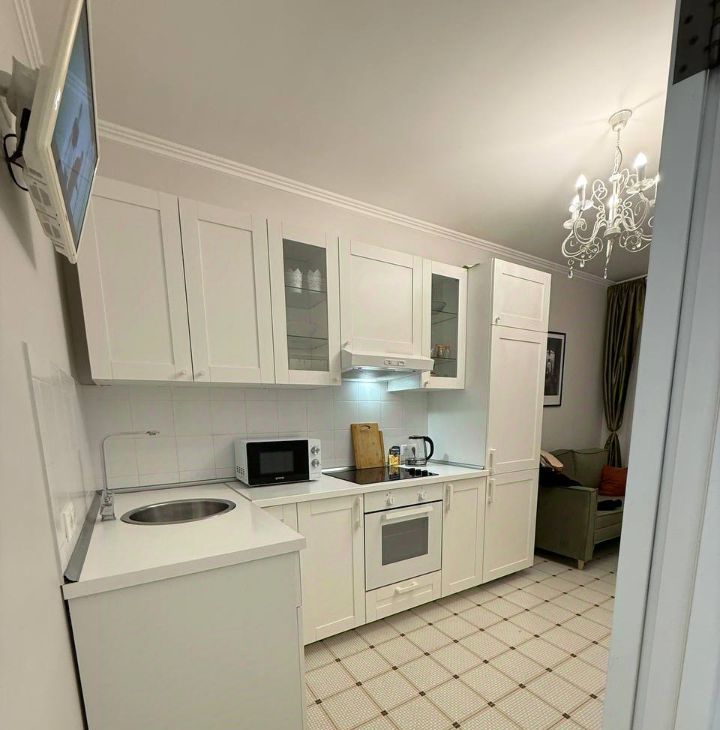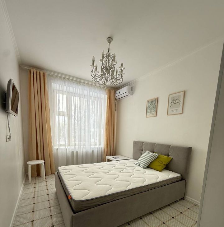 В квартире выполнен косметический ремонт, что создаёт атмосферу уюта и свежести. Высота потолков 2.8 метра. Просторная кухня площадью 12 кв. м позволяет удобно готовить и принимать пищу. В комнате и на кухне есть вся необходимая мебель. Диван на кухне раскладной, ещё одно спальное место для гостей.Из техники: кондиционер, холодильник, 2 телевизора, стиральная машина, чайник, микроволновая печь. Санузел совмещённый, оборудован ванной. Дом теплый,радиаторы регулируются, теплый пол в зимний период. Окна выходят во двор, что обеспечивает тишину и спокойствие. Имеется консьерж.
