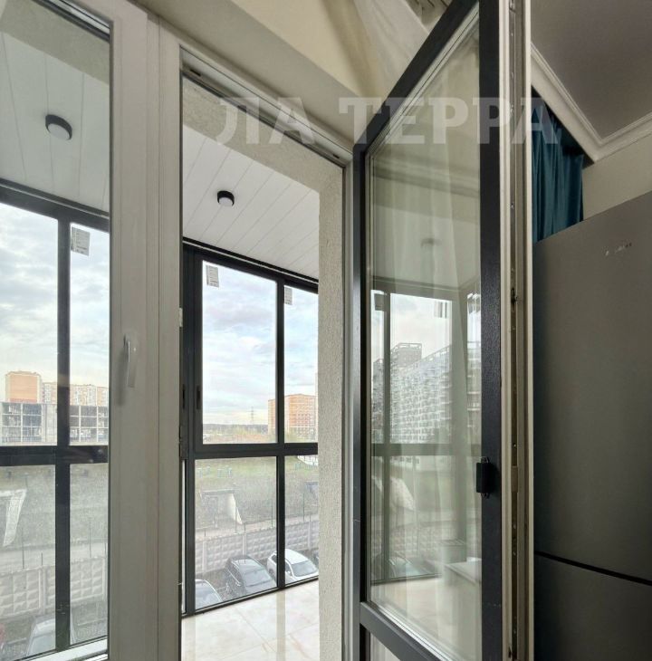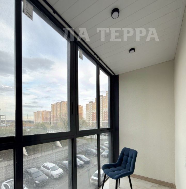 Большой балкон с панорамным остеклением.