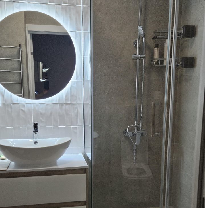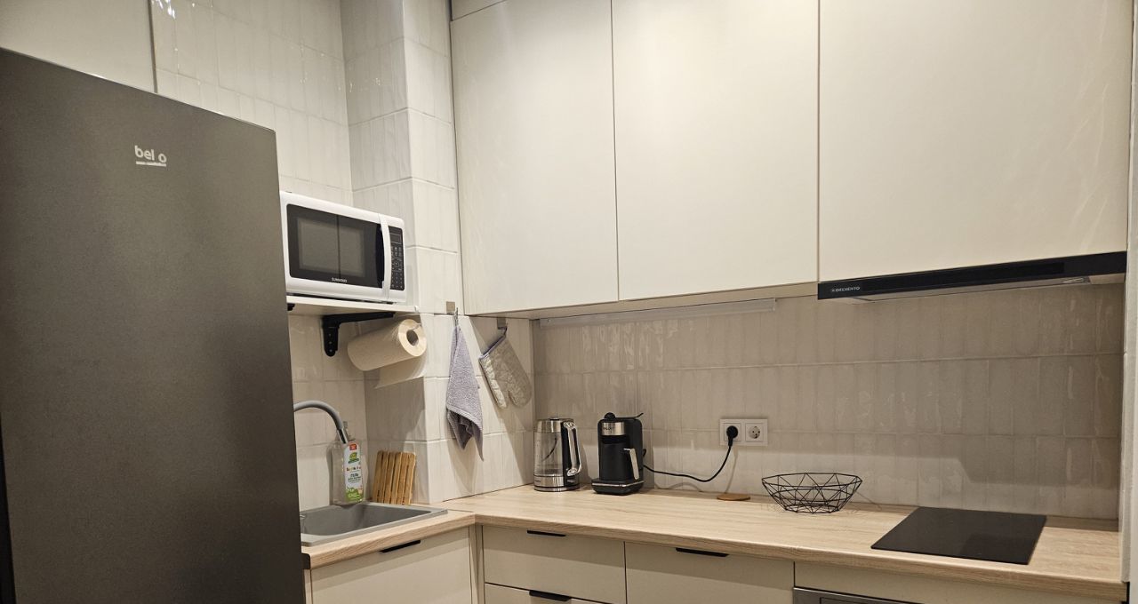 Евро ремонт, все есть для проживания:кофеварка, чайник, посуда, постель, фен, даже фитнес коврик, пылесос.