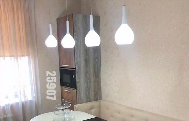Просторная и стильная кухня-столовая с полным комплектом качественной бытовой техники. Обеденный стол со стеклянной поверхностью раздвигается и становится очень вместительным. Всё для комфортной жизни имеется (стулья обсуждаются).