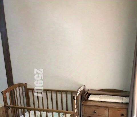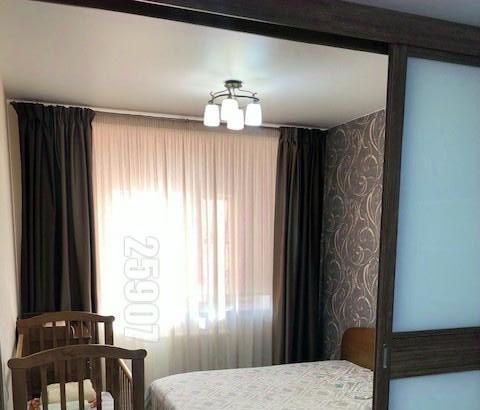 В огромной комнате обустроены две отдельные зоны для сна (шикарная крепкая кровать с ортопедическим матрасом, детские кроватка и пеленальный стол-комод с ящиками) и за раздвижной перегородкой - для отдыха/работы/детской игровой комнаты, а так же и очень вместительный и удобный шкаф-купе. Вывоз детской мебели и др. возможен.