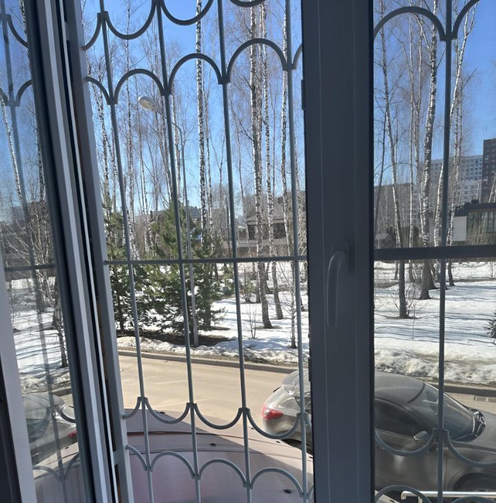 Квартира расположена на первом этаже кирпичного дома с высоким цокольным этажом. Окна выходят во двор с видом на ухоженную березовую рощу и частный сектор. Тишина и шикарный вид в любое время года. Летом очень красиво, клумбы цветов, раздолье для прогулок.