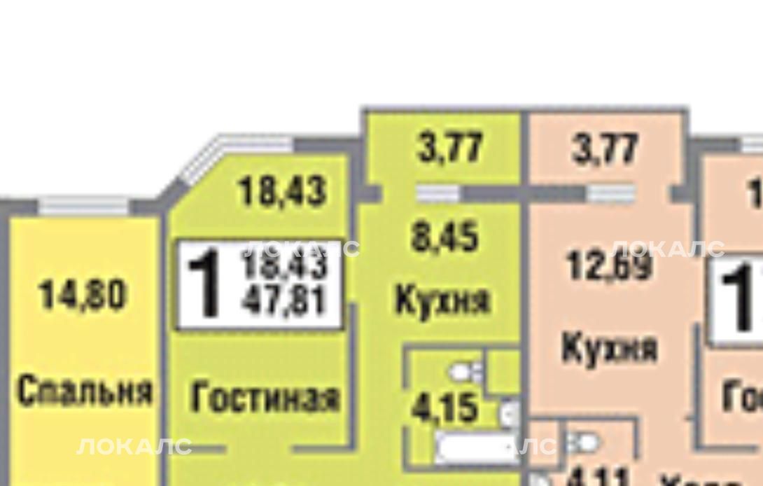 1-к кв. Москва пос. Коммунарка, ул. Сосенский Стан, 11 (48.0 м²)