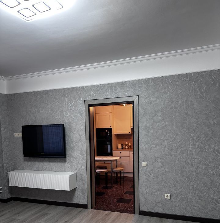 Укомплектована новой отличной бытовой техникой, кухонный гарнитур, стол + 4 стула, штора для ванной комнаты, тумба под телевизор.