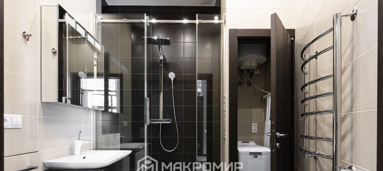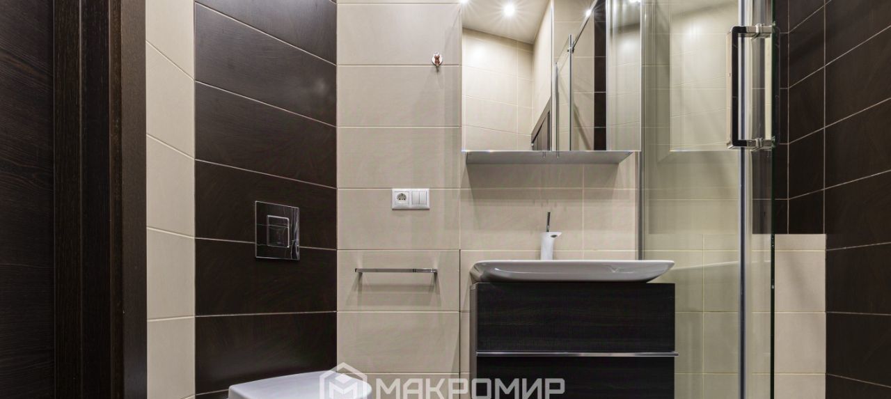 Совмещённый санузел, выполненный в современном стиле.