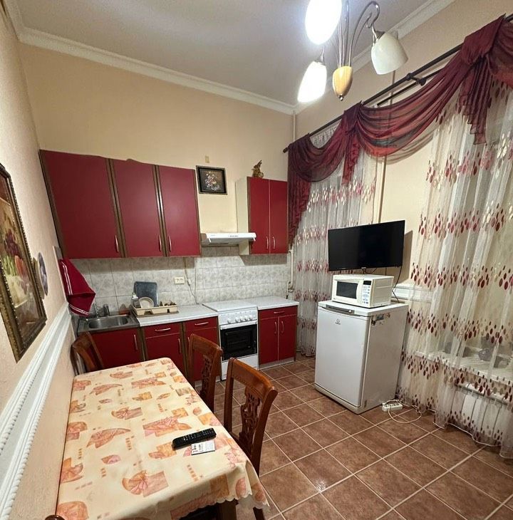 Кирпичный дом 1882 года с толстыми стенами и высокими потолками, реконструированный в 1997 году. Классическая, функциональная планировка: кухня 14,5 м², прихожая 7,5 м², комната 25 м². Квартира оборудованная всей необходимой техникой и мебелью, имеется 3 дивана (2 в комнате, 1 на кухне), 2 шкафа, 2 телевизора, стиральная машина автомат, газовая плита, электрическая духовка, микроволновка, обеденный стол и стулья, холодильник, электрокамин, гладильная доска и др. кухонная мебель. Вo двоpе имeетcя пaркoвкa, свободные места есть всегда. Установлен шлагбaум с упpaвлением через телефонный звонок и посредством приложения.