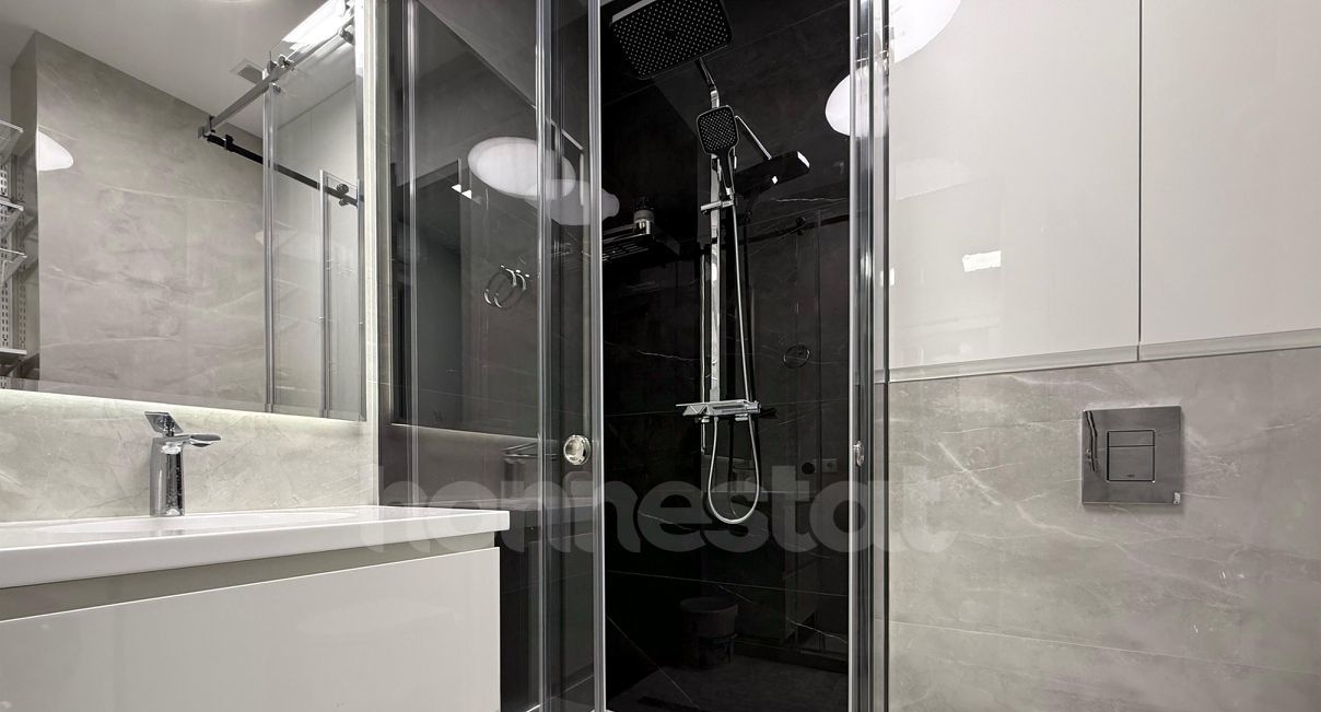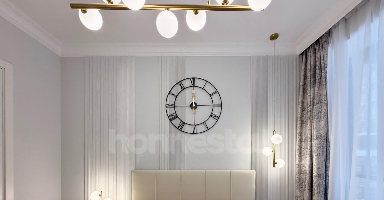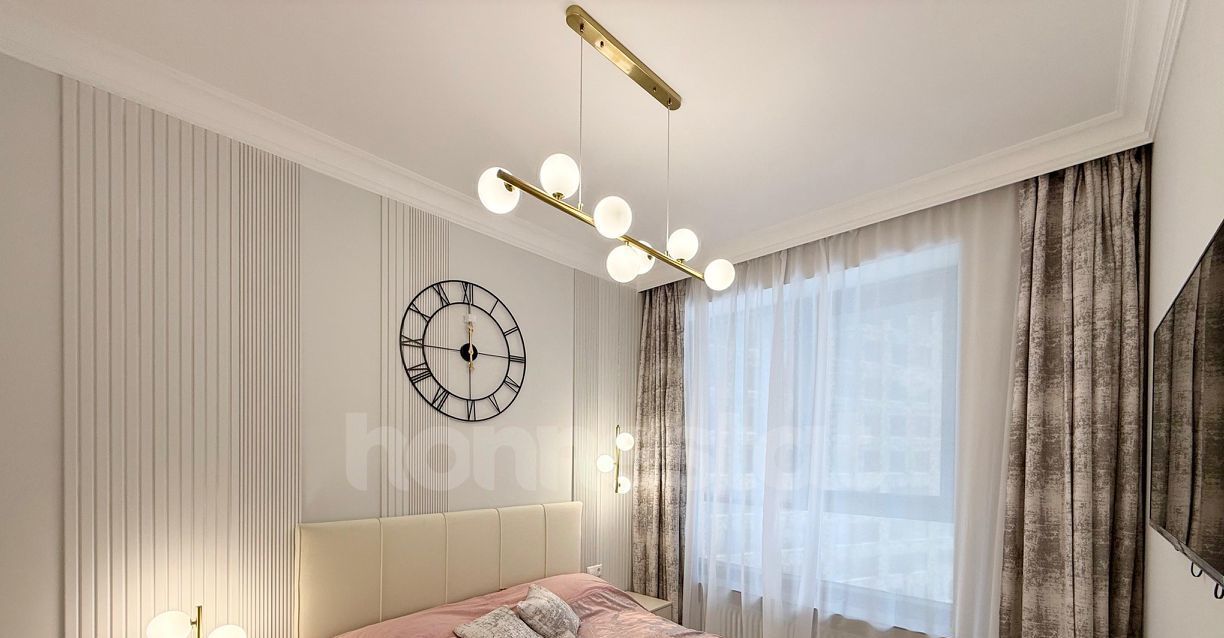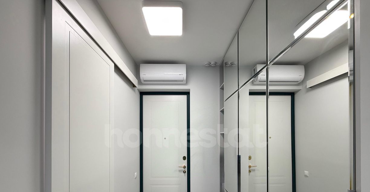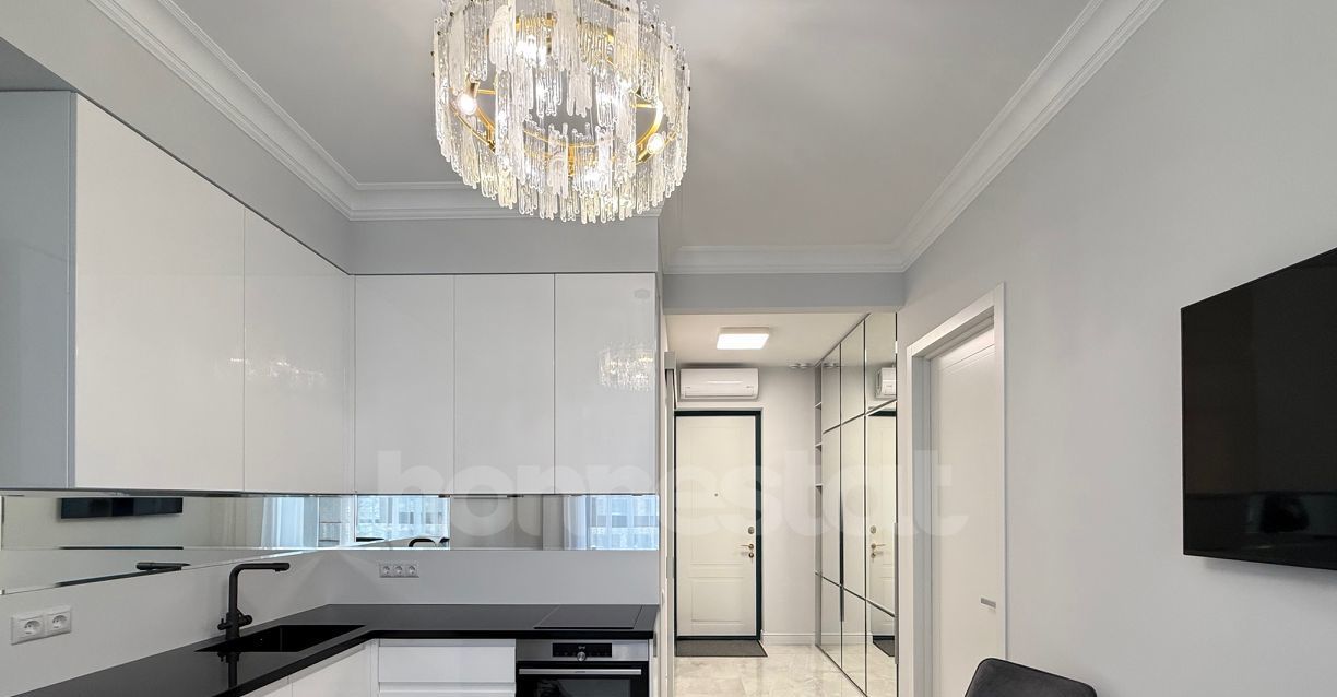В квартире выполнен дизайнерский ремонт, который создаёт атмосферу комфорта и уюта. Просторная кухня площадью 14 кв. м оснащена всей необходимой мебелью и техникой: здесь есть посудомоечная машина, холодильник и кондиционер. В комнате также присутствует мебель, а в ванной комнате установлена современная душевая кабина. Квартира очень светлая, за счет большого количества зеркал она ощущается еще больше. Окна выходят во двор, что гарантирует тишину и покой.