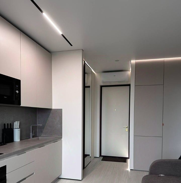 Квартира выполнена в дизайнерском стиле и полностью готова к проживанию. В комнате и на кухне есть вся необходимая мебель. Просторная кухня площадью 18 кв. м оснащена современной техникой: холодильник, посудомоечная машина, кондиционер и телевизор. В хоз. блоке установлена сушильная и стиральная машина. Уютная атмосфера и продуманный интерьер создадут для вас комфортное пространство для жизни.