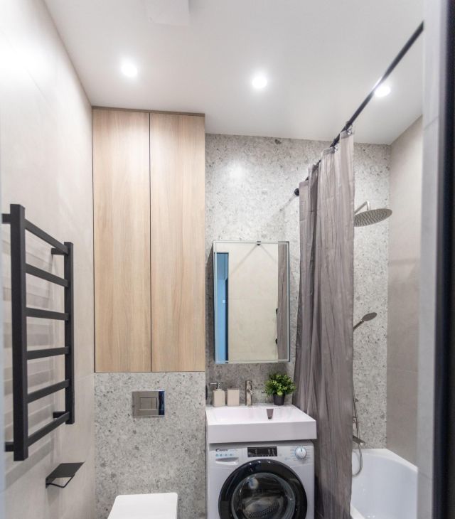 - санузел: совмещен, есть стиральная машина и нагреватель для воды.