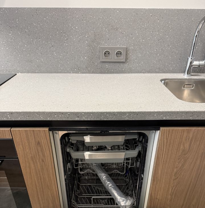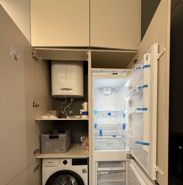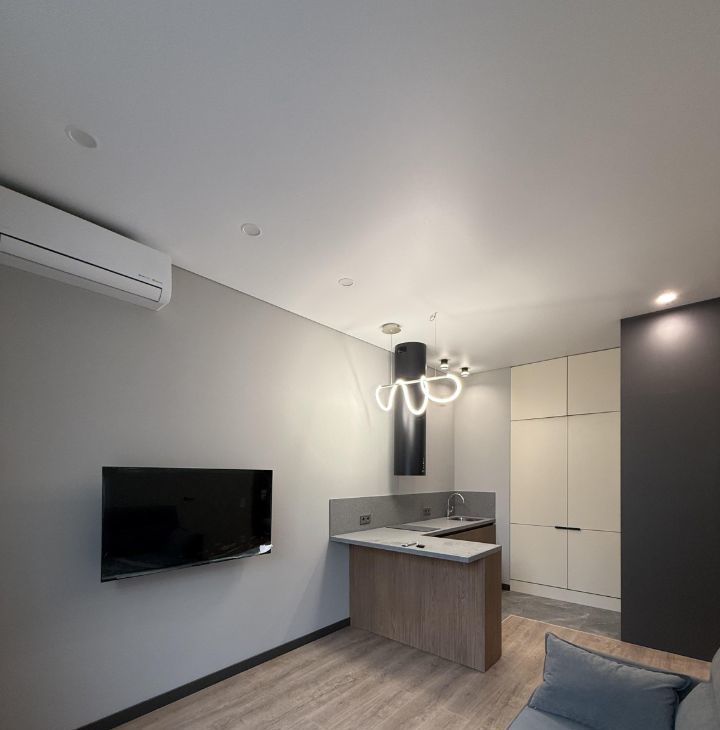 В квартире есть все необходимое для комфортного проживания. Просторная комната и кухня полностью меблированы. Из техники в вашем распоряжении кондиционер, холодильник, посудомоечная и стиральная машины, а также телевизор. Санузел совмещенный, оборудован современной душевой кабиной. Подключены интернет и телефон, поэтому можно сразу оставаться на связи.