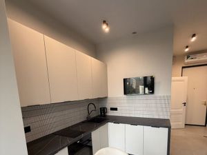 В квартире выполнен качественный дизайнерский ремонт. Квартира полностью готова к проживанию и оснащена всей необходимой мебелью и техникой. Кухня-гостиная совмещает в себе обеденную/гостиную зону и рабочее пространство кухни. Кухонный гарнитур оснащен всей необходимой техникой: варочная панель, духовой шкаф, вытяжка, посудомоечная машина, холодильник.