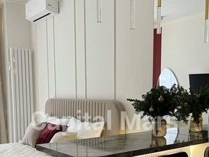 В квартире два кондиционера, встроенная кухня с посудомоечной машиной, варочной панелью, духовкой. Диван в кухне раскладывается в полноценное спальное место. Гардеробная комната оборудована системой хранения. Интернет есть.