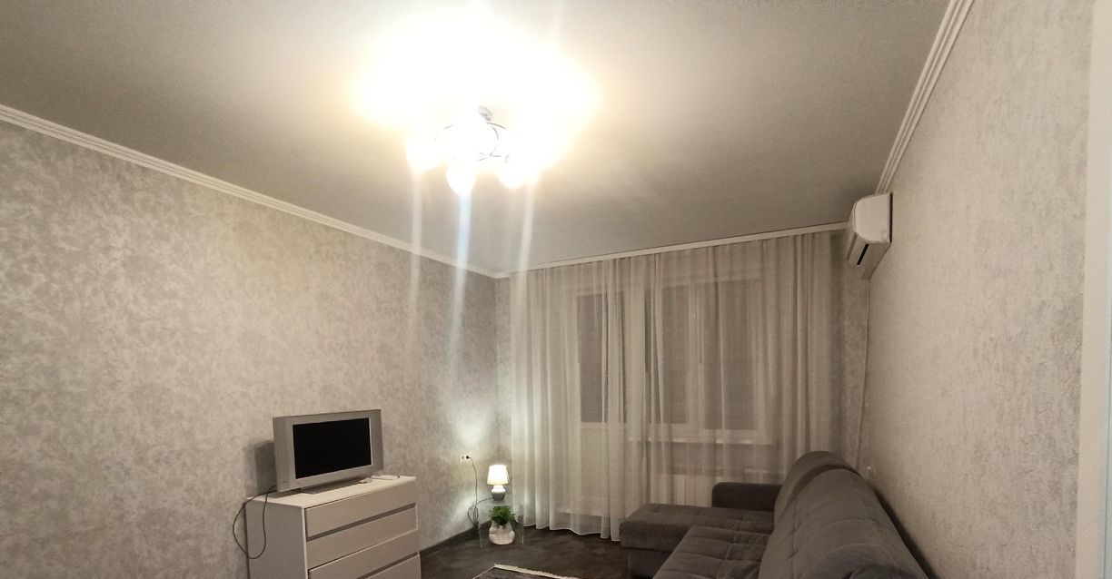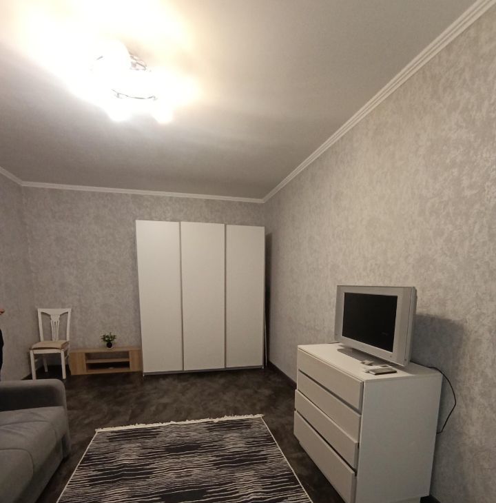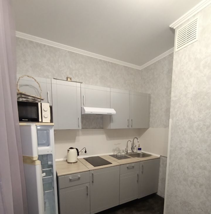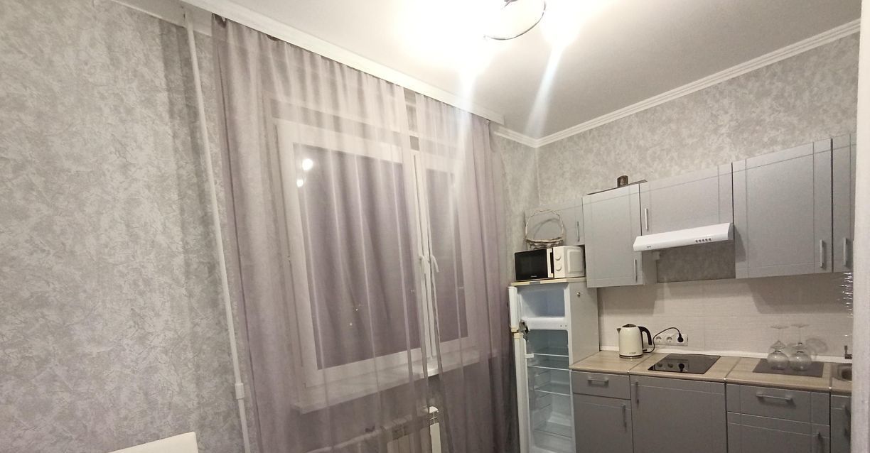 Сдаётся уютная однокомнатная квартира площадью 40 кв. м на последнем, 14-м этаже панельного дома, построенного в 1999 году. Жилая площадь составляет 20 кв. м, кухня — 9 кв. м, а окна выходят на улицу.