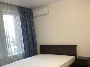 Есть вся необходимая мебель, из техники: холодильник, стриральная машина, телевизор, кондиционер, плита с вытяжкой, микроволновая печь. Подключен интернет.