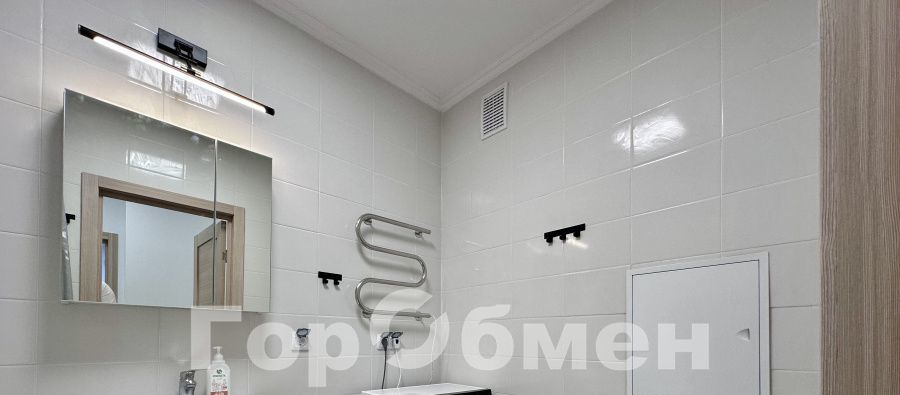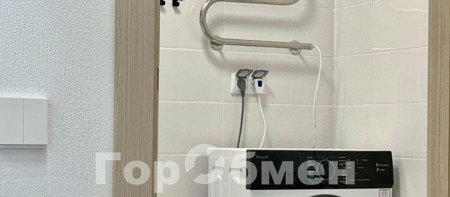 - Совмещённый санузел с современной сантехникой, стиральной машиной и продуманными системами хранения.