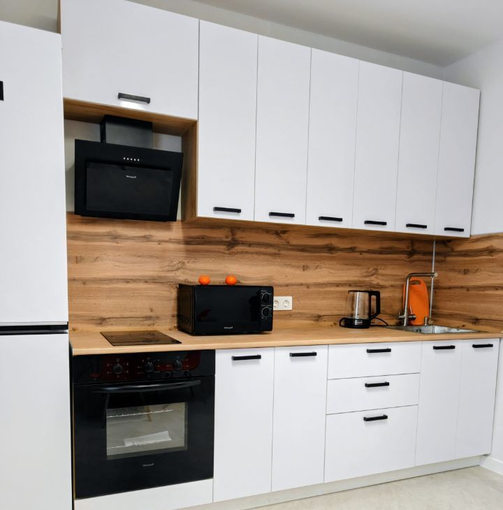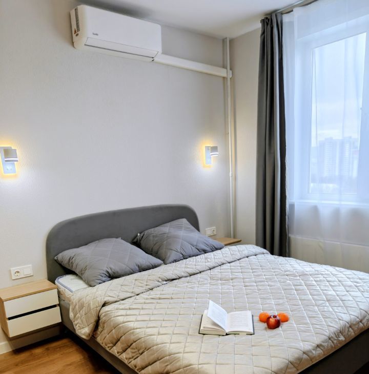 В квартире есть всё необходимое для комфортного проживания: кондиционер, холодильник, телевизор и стиральная машина. Кухня и комната обставлены мебелью и качественной бытовой техникой, что позволит вам сразу заселиться без лишних хлопот. Квартира полностью мебелирована и укомплектована, в том числе постельным бельем и столовыми приборами по принципу Заезжай и Живи.