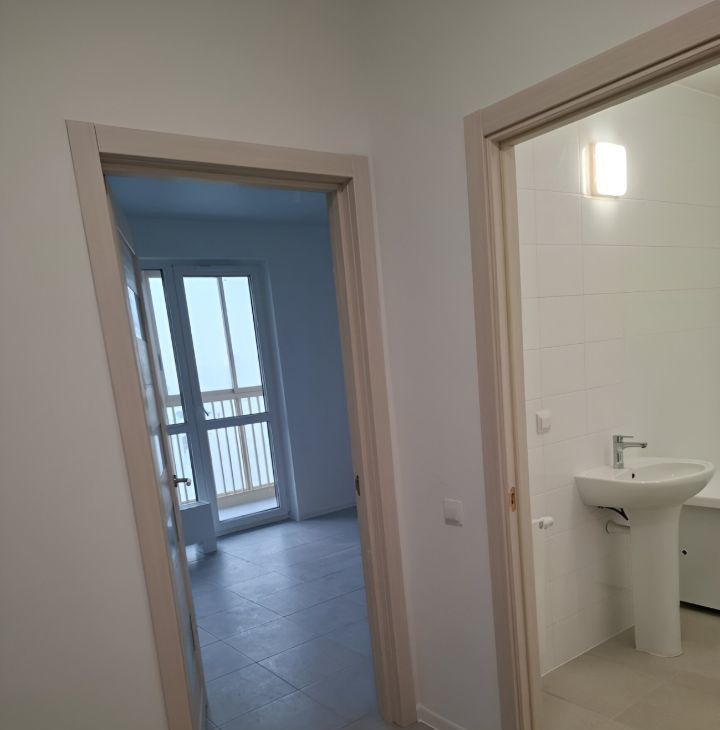 Светлая, просторная квартира в новом доме. Свободна! Ремонт от застройщика с прекрасным видом из окна и большим балконом. Квартиру можно наполнить по своему вкусу.