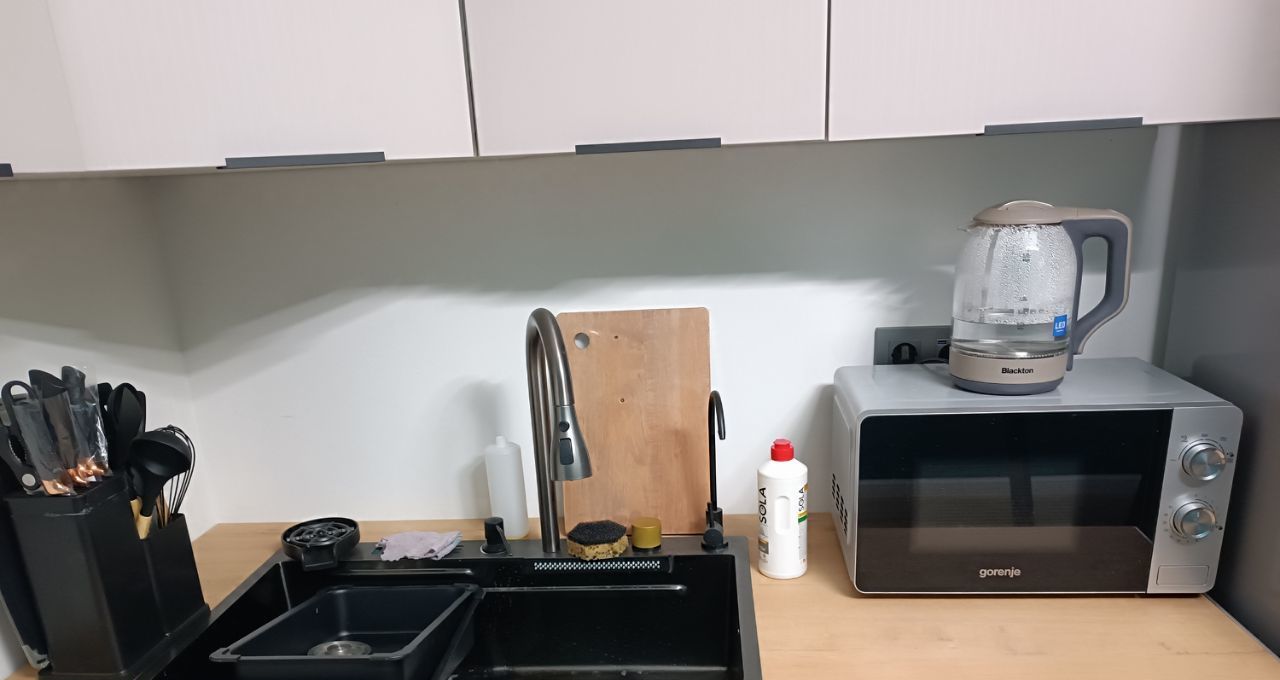 Квартира с дизайнерским ремонтом, продуманным до мелочей. Жилая площадь составляет 15 кв. м, просторная кухня — 9 кв. м. Окна выходят как во двор, так и на улицу, обеспечивая хорошую освещенность. В квартире есть всё необходимое для комфортной жизни: холодильник, телевизор и стиральная машина. Санузел оборудован современной душевой кабиной.