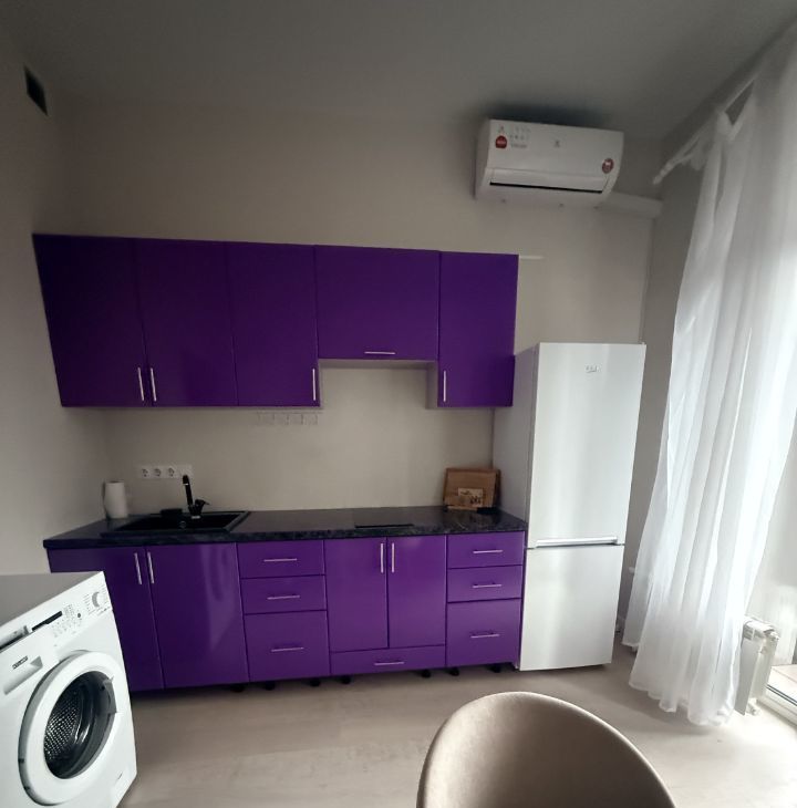 В квартире выполнен косметический ремонт, есть вся необходимая мебель как на кухне, так и в комнате. Для вашего удобства установлены кондиционер, холодильник и стиральная машина. Планировка квартиры включает в себя кухню площадью 10 кв. м и жилую зону 15 кв. м. Санузел совмещённый, в ванной комнате установлена ванна. Приятным бонусом является наличие балкона.