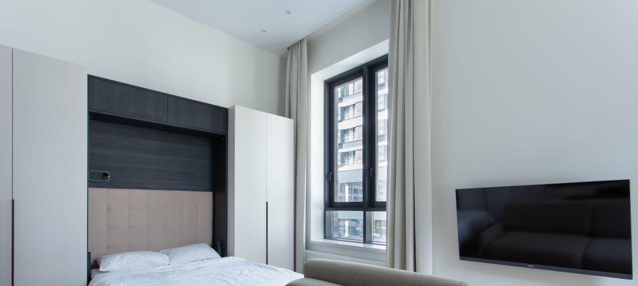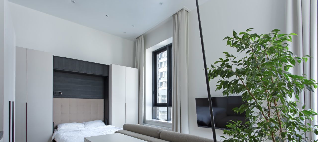 Просторная квартира-студия. Высокие полотки 3,7 м. Консьерж-сервис 24 часа. Закрытая территория. Парк в минутной доступности.