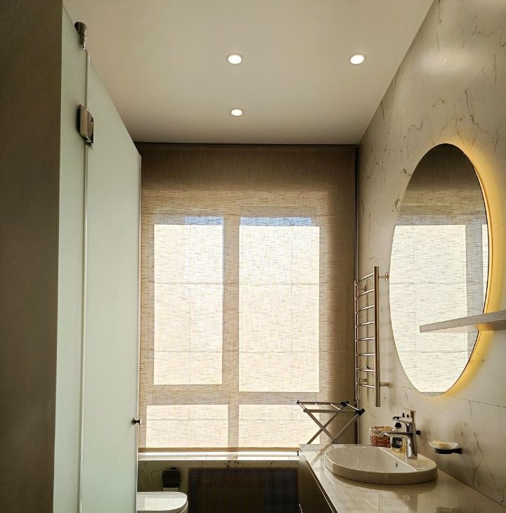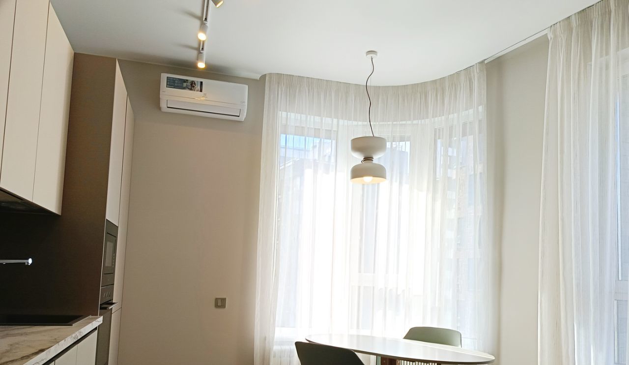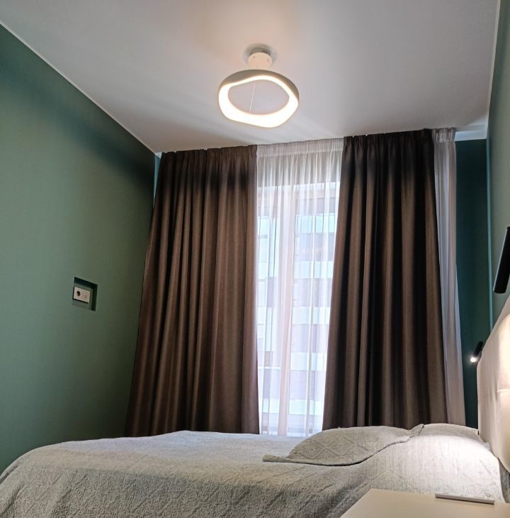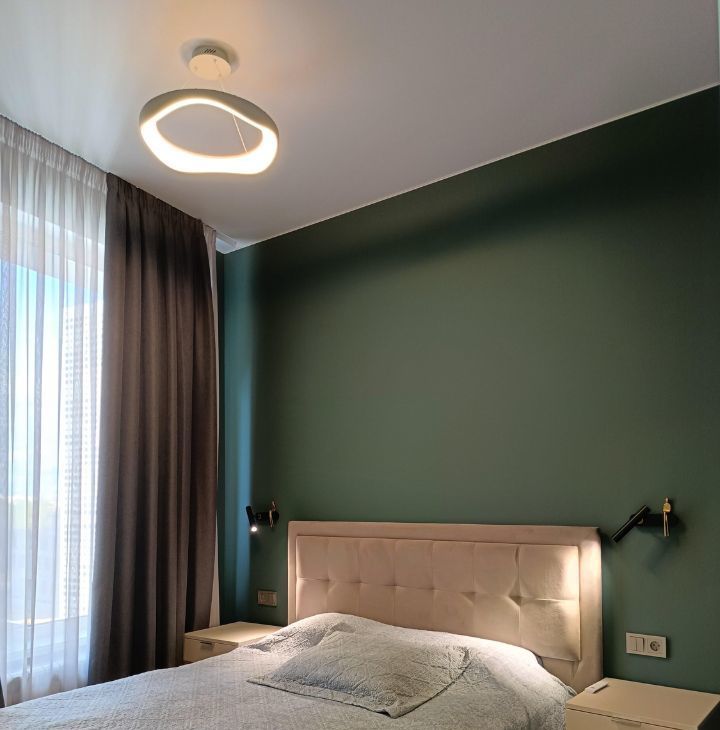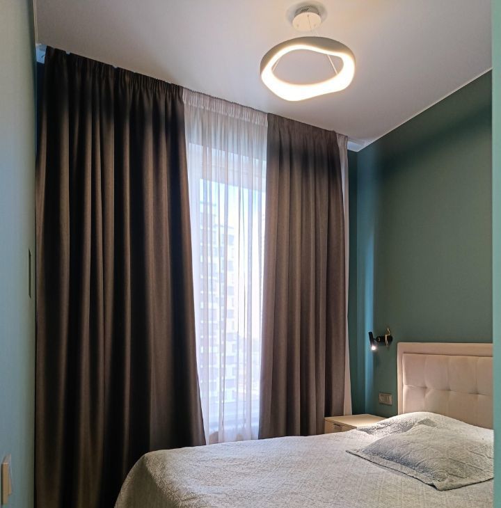 Со вкусом подобранны предметы интерьера, люстры, светильники и бра, шторы blackout ручной работы. В кухню шторы также сшиты на
