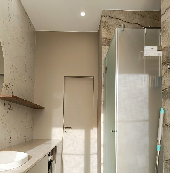 Сан.узел совмещен, установлена душевая кабина, стильное зеркало с бесконтактной подсветкой. БЕЗ БАЛКОНА!