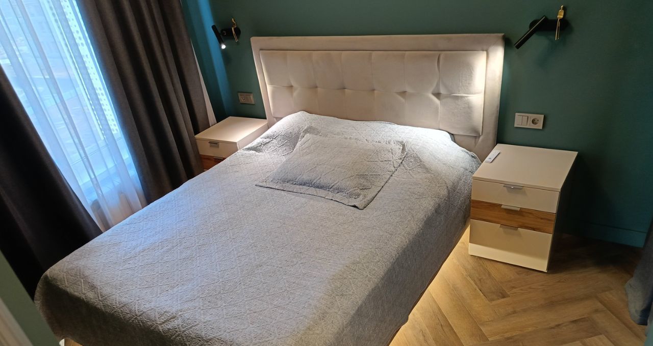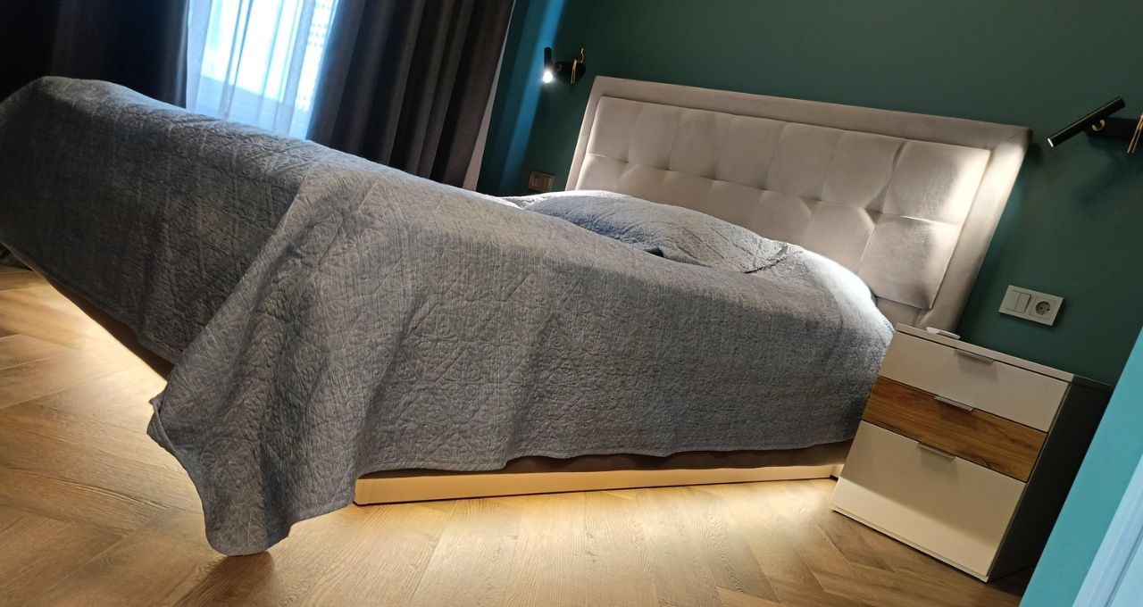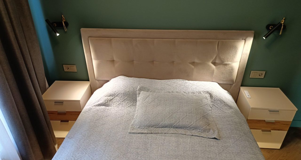 Функциональная мебель, комфортная 2-спальная кровать с ортопедическим матрасом и подъемным механизмом, размер 160х200м; ВМЕСТИТЕЛЬНЫЕ ШКАФЫ, В СПАЛЬНЕ ОБОРУДОВАННАЯ ГАРДЕРОБНАЯ. Куплена дизайнерская прихожая из массива дуба (на фото нет, но уже доставлена).