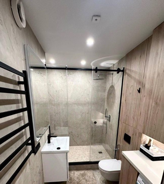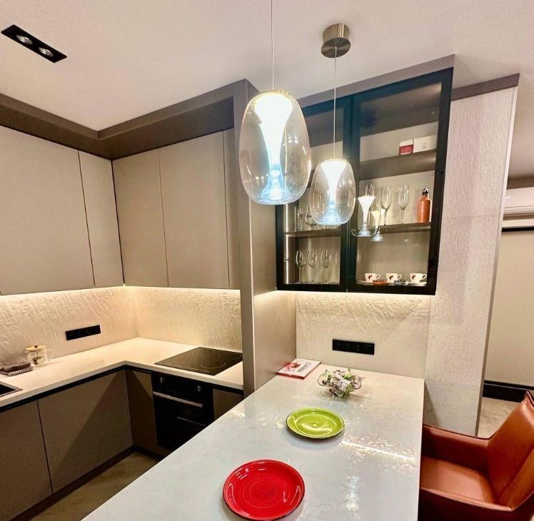 Квартира с дизайнерским ремонтом, полностью меблирована и готова к комфортному проживанию. Окна выходят во двор, обеспечивая тишину и уют. В просторной комнате и на кухне установлена современная мебель. Из техники в распоряжении арендаторов: кондиционер, холодильник, посудомоечная машина, телевизор и стиральная машина. В ванной комнате установлена душевая кабина, есть все необходимое для удобства. Дополнительно имеется балкон, где можно отдохнуть на свежем воздухе.