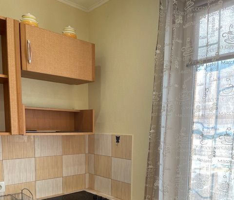 В квартире сделан косметический ремонт, установлена необходимая мебель на кухне и в комнате. Из техники в наличии: холодильник, телевизор и стиральная машина, поэтому можно сразу заезжать и жить. Санузел раздельный, есть ванна. В комнате перегородкой выделено отдельное спальное место, что удобно для семьи с детьми.