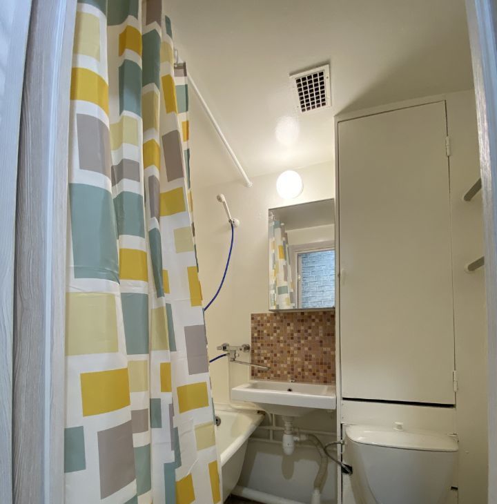 Из техники: кондиционер, холодильник, телевизор и стиральная машина, что делает проживание здесь комфортным. Санузел совмещенный, с ванной.