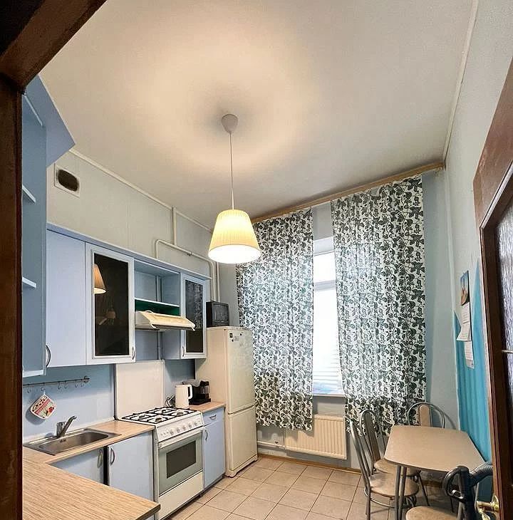 Сдается уютная однокомнатная квартира в сталинском доме рядом с метро. Общая площадь — 40 кв. м, жилая — 18 кв. м, кухня — 15 кв. м. Квартира расположена на 2 этаже 7-этажного монолитного дома, построенного в 1950 году. Высота потолков составляет 3,2 метра. До станции метро Тушинская всего 5 минут пешком.