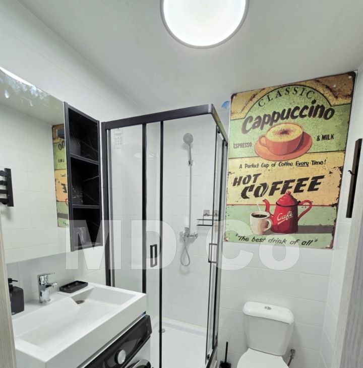 В квартире есть всё необходимое для комфортного проживания, вся бытовая техника и мебель в наличии в отличном состоянии. Просторная кухонная зона. Установлена система кондиционирования воздуха. Большой ЖК Телевизор. Санузел совмещён, с душевой кабиной. Интернет. Балкона нет.