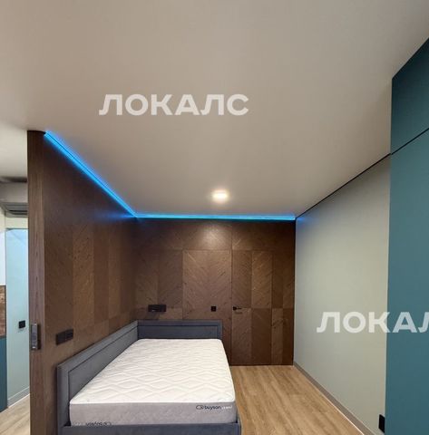 В спальной зоне установлена кровать с ортопедическим матрасом (высота 27см) и местом для хранения. Предусмотрено несколько вариантов комбинированного освещения и подсветок. Высокий, вместительный шкаф и кожаный диван, который быстро и легко трансформируется в дополнительное 2-спальное место.