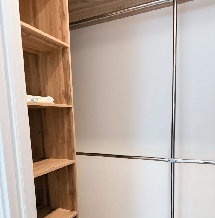 Порядок и простор: Вместительный шкаф-купе и отдельная вместительная зона хранения (кладовая) — все вещи будут аккуратно убраны.