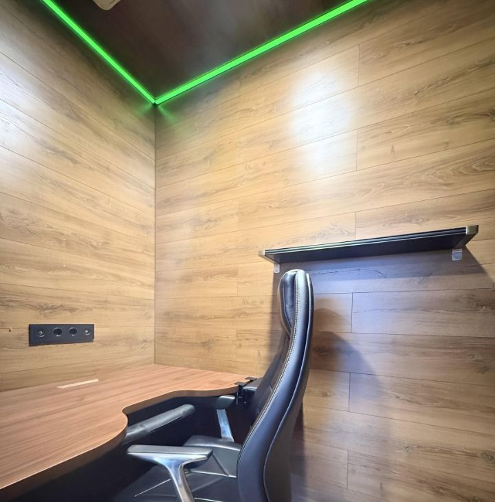 Для вашего удобства оборудован небольшой кабинет, в котором установлен отдельный кондиционер, компьютерный стол и проведен интернет.