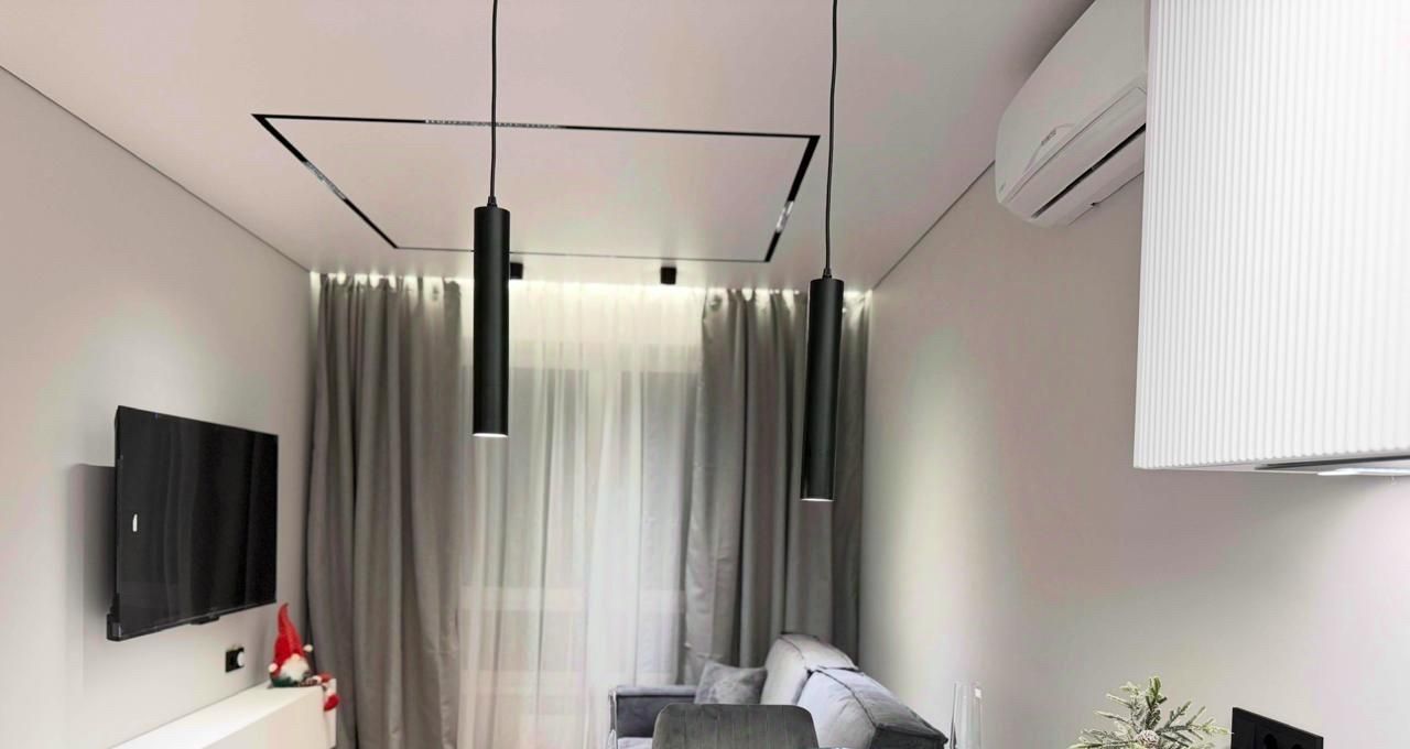 На кухне и в комнате установлена новая, современная мебель и техника ( включая посудомоечную машину, стиральную машину с функцией сушки), кондиционер, система очистки воды, система аква-стоп (Нептун) против протечки воды. Так же установлена современная технология умного трекового освещения Denkirs smart (многоуровневое освещения с разными видами и сценариями подсветки ).